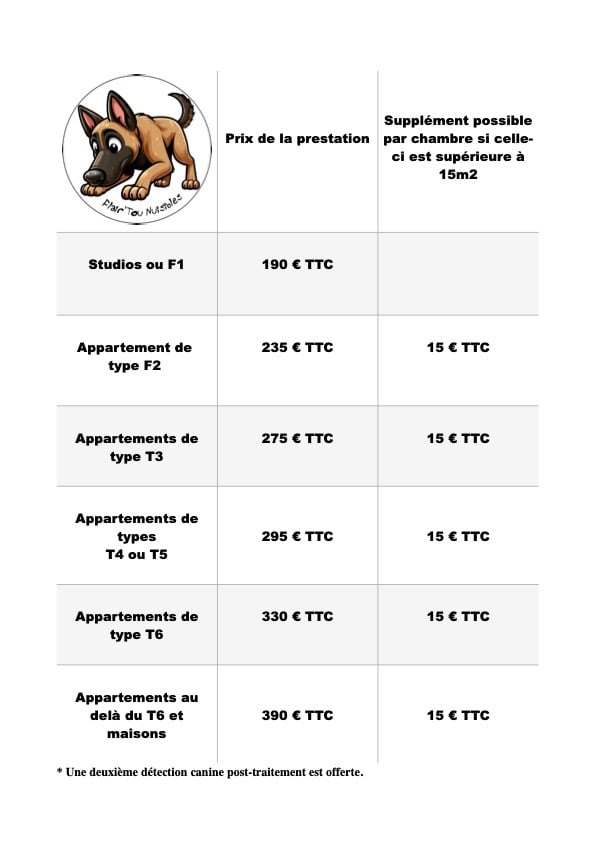 Tarif d'une détection canine de punaises de lit